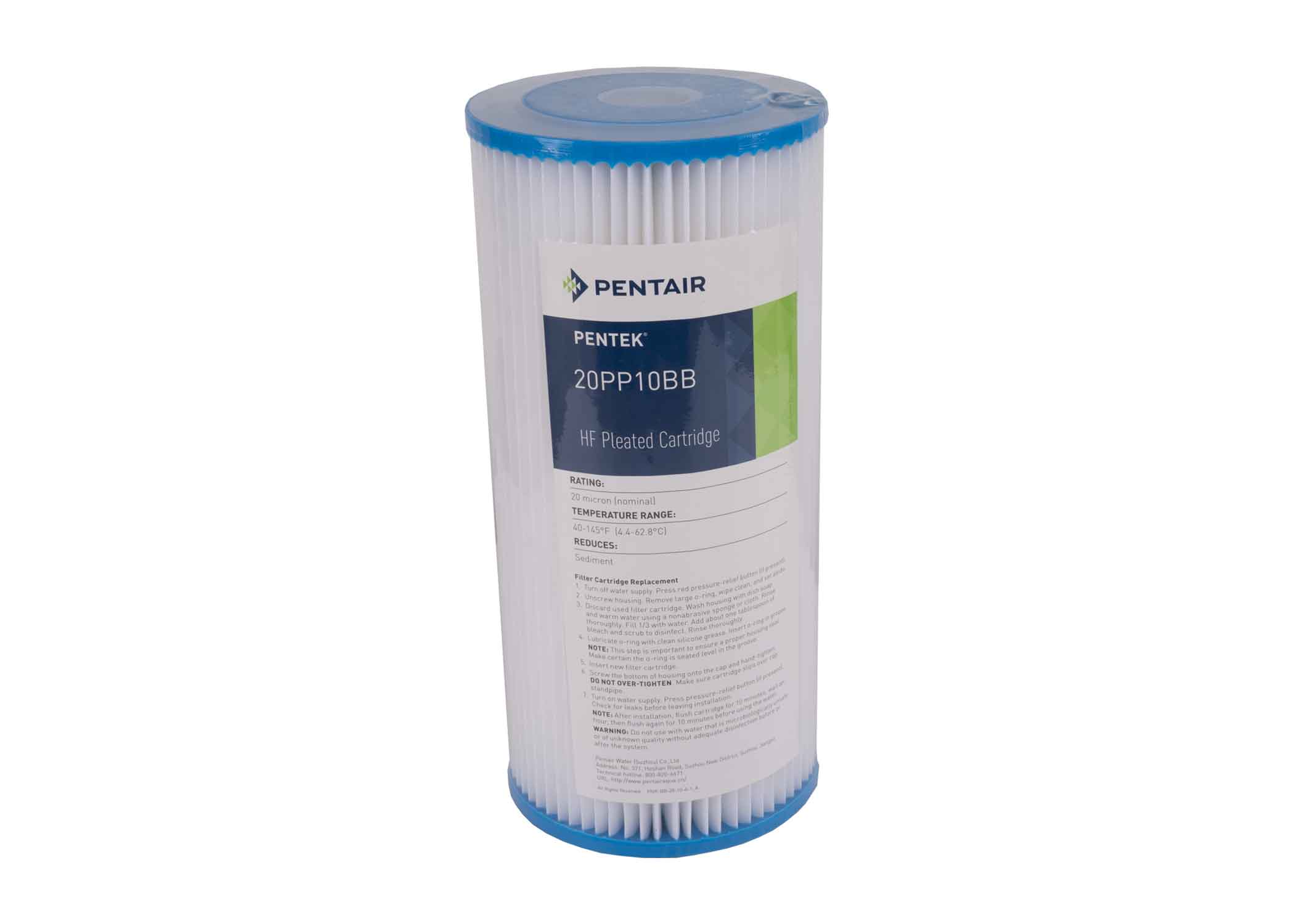 Replacement sediment filter cartridge 20- micron polyester pleated 10″ x 4.5″