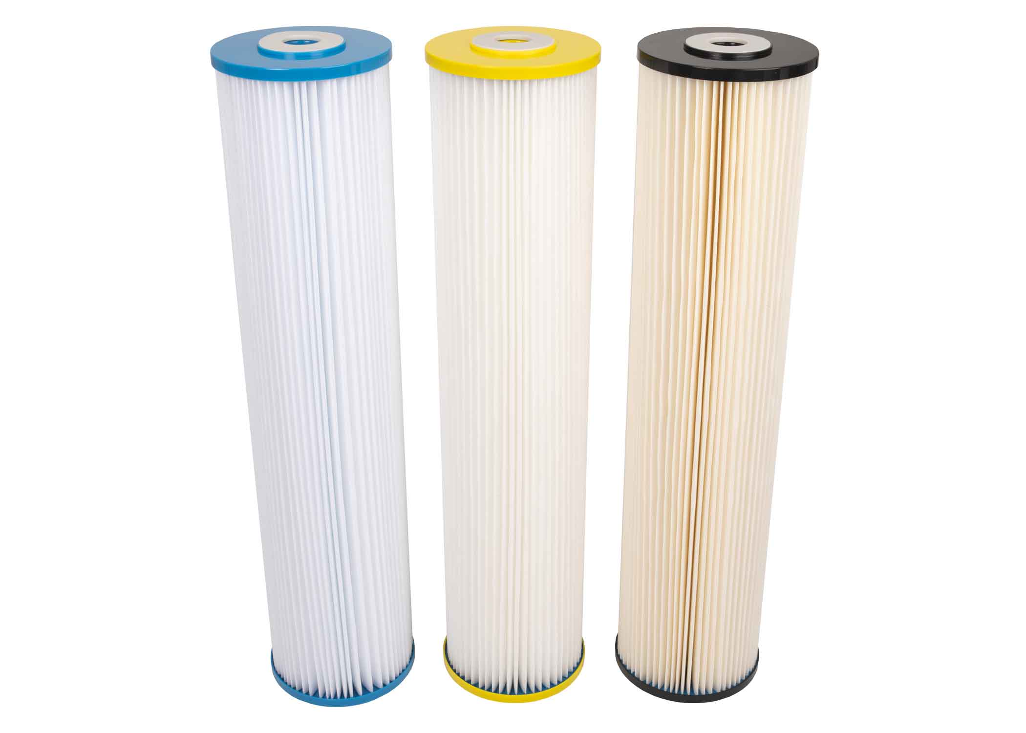 Triple 20″ x 4.5″ Filter Cartridges 20, 10 and 1-Micron Polyester Pleated Washable #20