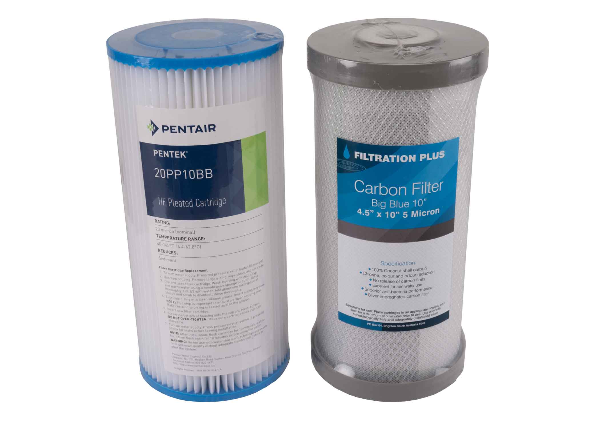- Filtration Plus 5-micron Silver carbon block cartridge. Designed to filter unwanted taste and color from your rainwater supply. Silver impregnation of the carbon media inhibits the growth of bacteria on the filter cartridge reducing unpleasant odour in the water.