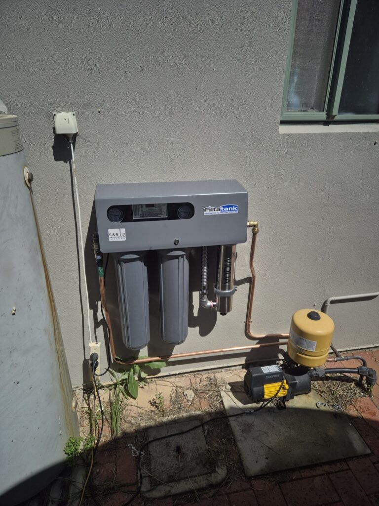 Each filtration system is supplied fully assembled, ready to go. Simply mount the unit to a house or shed wall and then connect the plumbing to the 25mm inlet and outlet water ports. There is no noticeable loss of water flow or pressure with this filtration system installed!